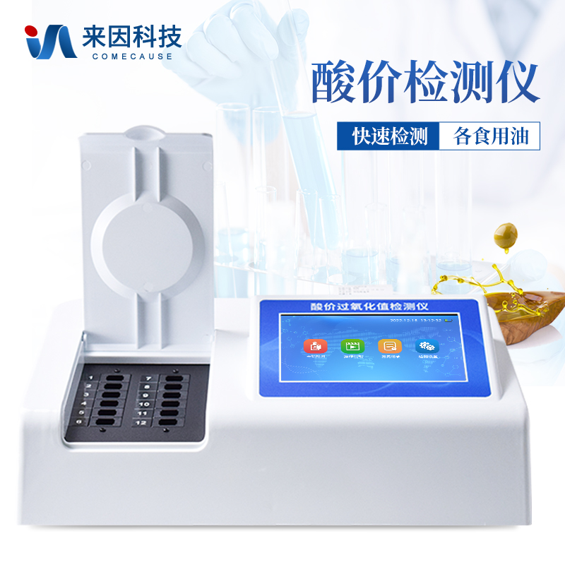 食用油酸价检测仪为集成化油品快速检测分析设备,能够快速检测食用植物油、食用猪油、花生油、葵花油、米糠油、食品、肉制品中的酸价含量;通过检测可确定植物油是否符合国家标准或是否为劣质油、地沟油等。仪器预留其他项目检测程序和端口,根据日后需求可方便的自主增加检测项目。日后可升级为检测水产品、面制品的综合类型仪器。