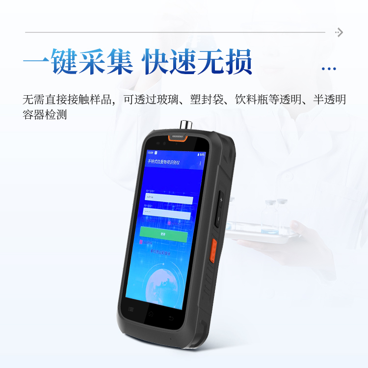 一键采集、快速无损检测:无需直接接触样品,可透过玻璃、塑封袋、饮料瓶等透明、半透明容器检测;